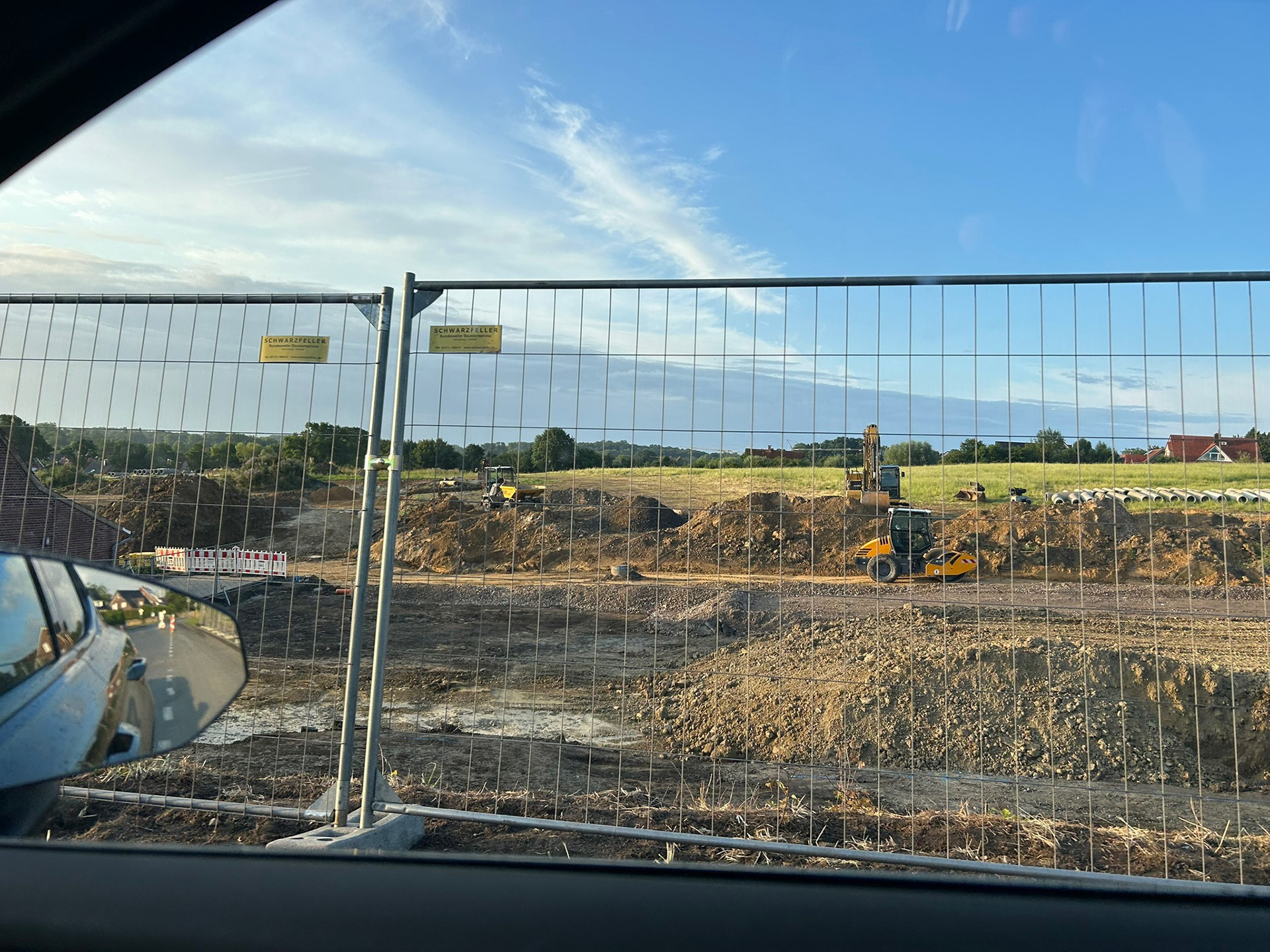 Eigentlich wohnen hier die Hasen. Und andere Tiere. Die Politik feiert. Ein Dorf mit Weitblick, dass sich selbst die Aussicht verbaut. Die deutsche Bautristesse ist vorprammiert. Bald wohnt hier der RASTER-MAN ...